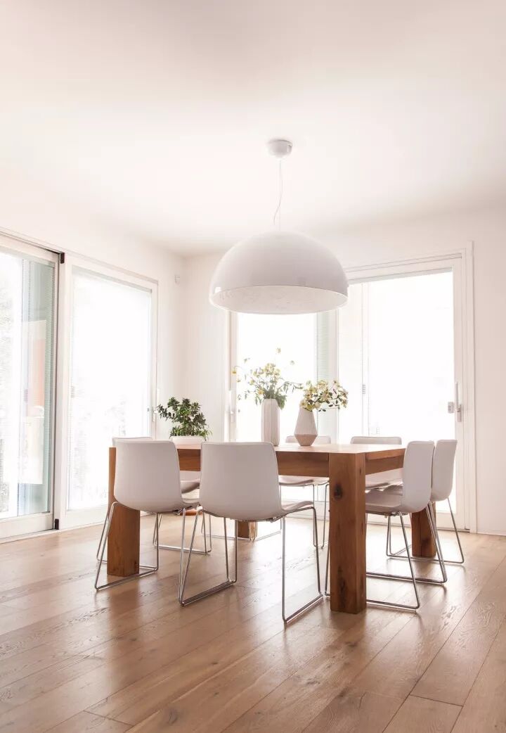 推薦安置直射光線的大吊燈在餐桌的正上方,離地距離要在2.2米以上,以便餐桌上的交流。在餐桌上方放置多個直射燈也是不錯的選擇。