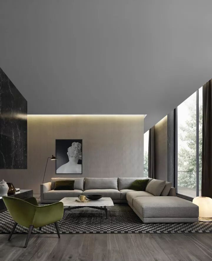 客廳是一個休閑放松的空間,需要的光照適中即可,一定要避免集中的直射光,特別是在沙發區域。